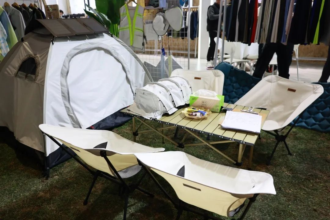 此次展會我們拋棄了以往傳統的充滿商務氣息的展館設計,而是將戶外露營的主題結合進展館設計中,草坪、帳篷、露營車等元素與本次展會的“馭陽”防曬系列形成了極好的呼應設計。