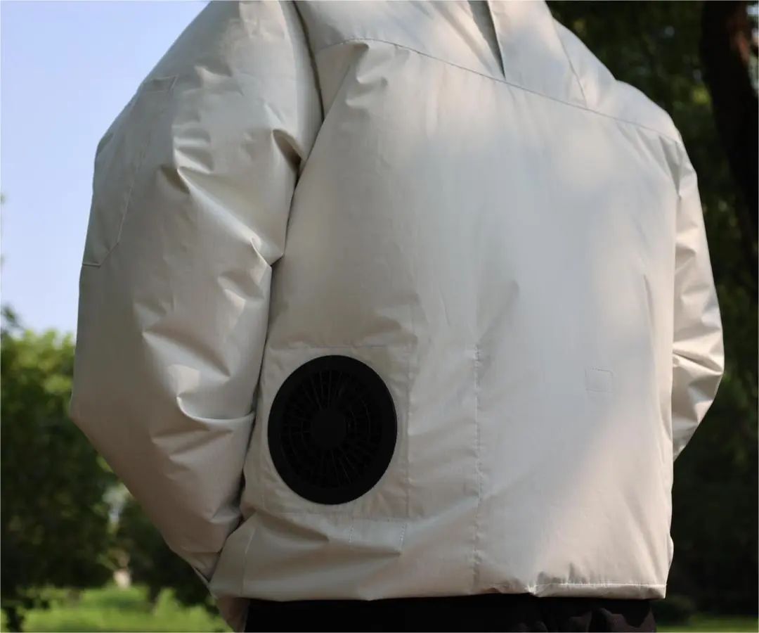 空調服是在上衣的左右腰間處安裝兩個小型風扇,將室外的空氣吸到衣服內,通過汗水蒸發帶走體表的熱量,使身體冷卻,讓人感到涼快舒適。